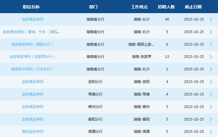 2016交通銀行湖南分行校園招聘職位表(共招131人,其中張家界13人)