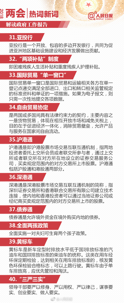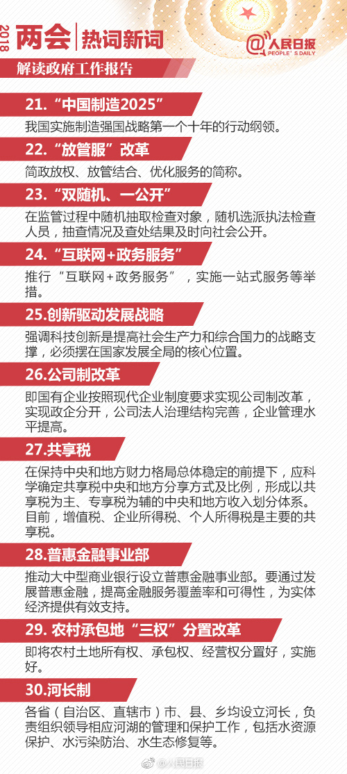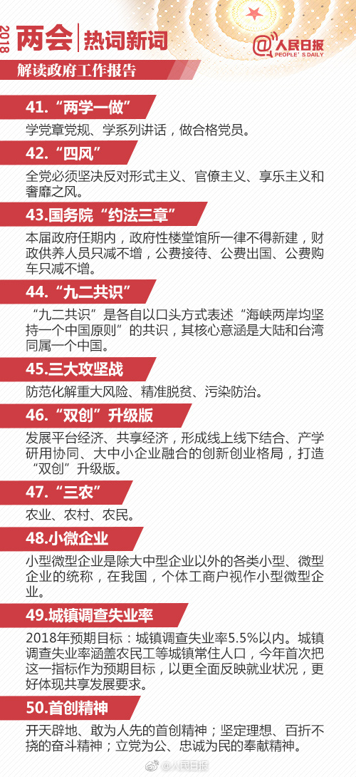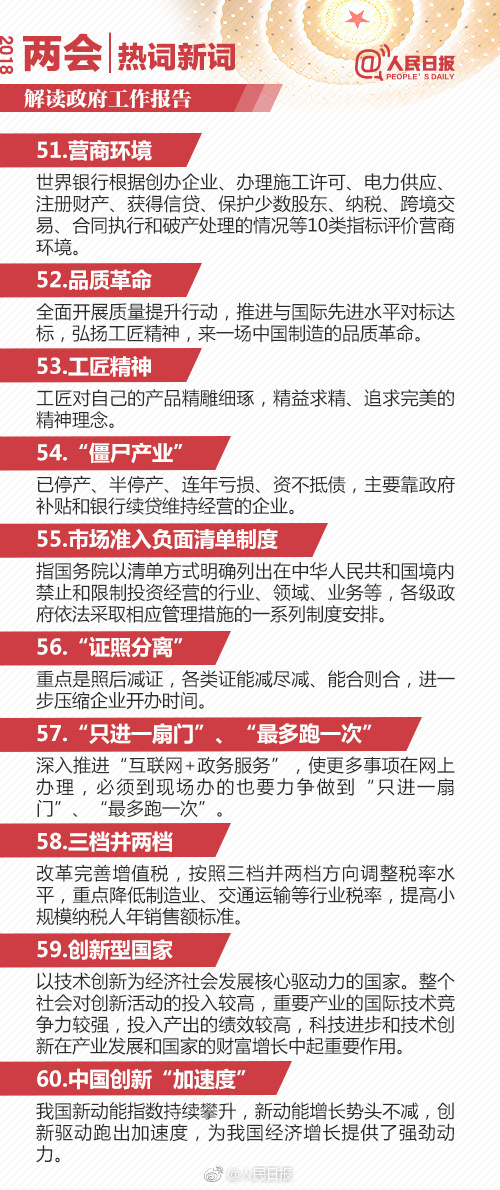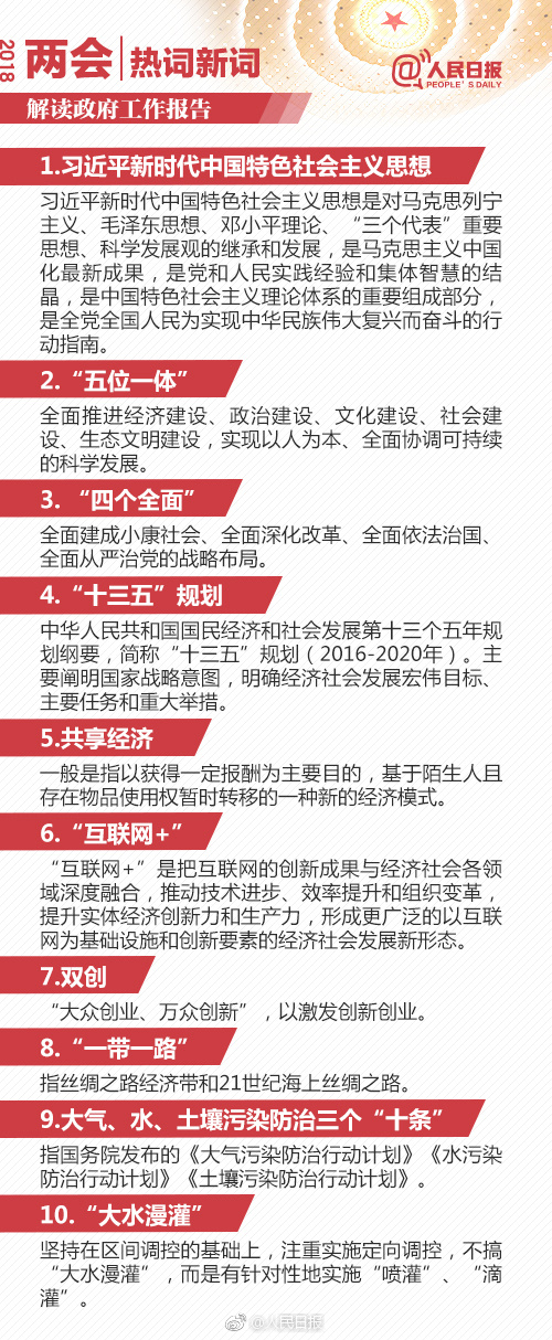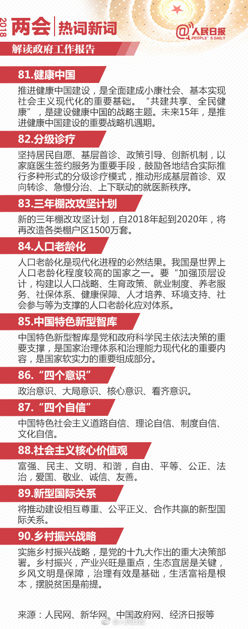 在公務員考試常識部分是很多考生最為頭疼的部分,而其題量所占的比重充分表明其在考試中的重要地位。常識則需要不斷積累,不斷溫故才能夠更牢固的掌握。今天載了人民日報微博分享的2018政府工作報告90個熱詞解釋,供考生學習。