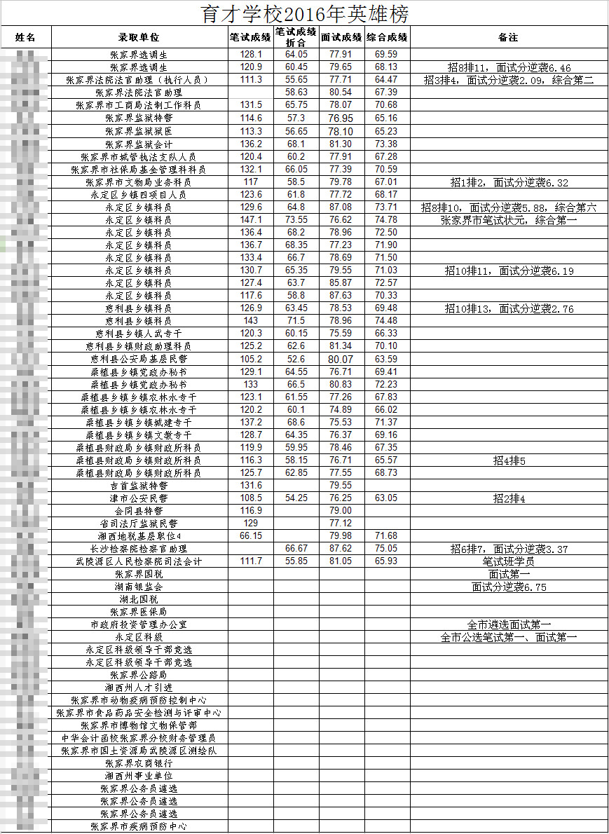 張家界育才學(xué)校2016年公務(wù)員考試英雄榜
