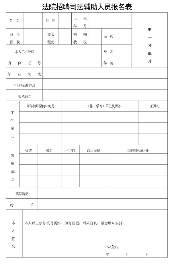 2、武陵源區(qū)人民法院招聘司法輔助人員報名表。