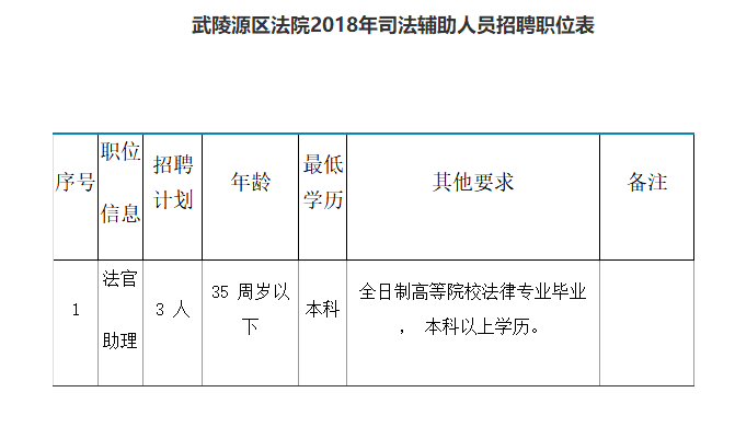 附:1、武陵源區(qū)法院2018年司法輔助人員招聘職位表;