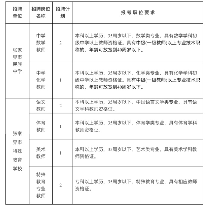 本次招聘教師考試采取筆試、面試方式進(jìn)行,由張家界市教育局、張家界市民族中學(xué)和張家界市特殊教育學(xué)校共同組織實施。