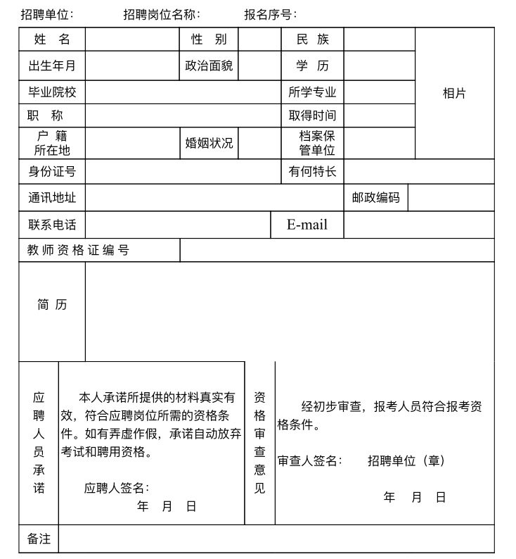2018年張家界市市直學(xué)校公開招聘教師報名表