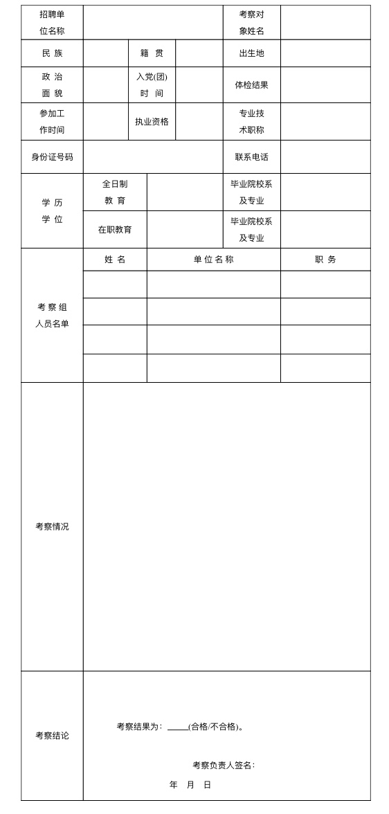 張家界市事業(yè)單位公開招聘人員考察表
