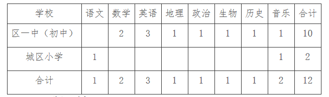 計(jì)劃選調(diào)教師共12名,具體學(xué)科和人數(shù)如下: