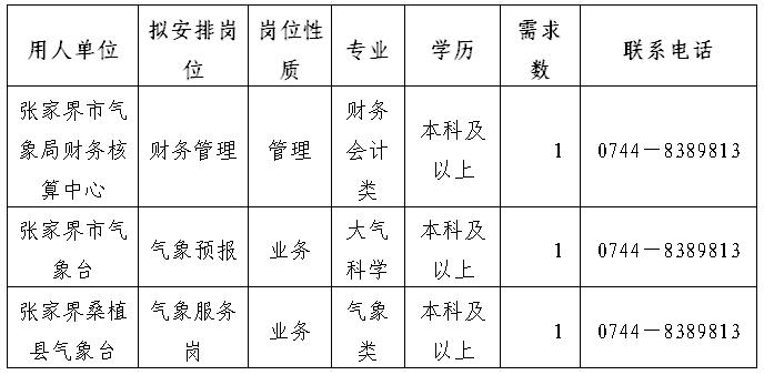 張家界市氣象局招聘畢業(yè)生3名