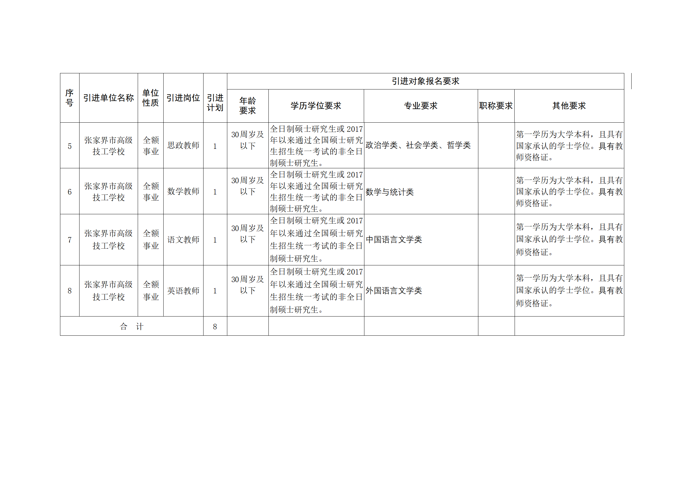 本次共計劃面向社會公開引進(jìn)急需緊缺人才8名,納入單位事業(yè)編制管理,引進(jìn)崗位、人數(shù)及資格條件見《張家界市高級技工學(xué)校2021年公開引進(jìn)急需緊缺人才職位計劃表》(附件1)。