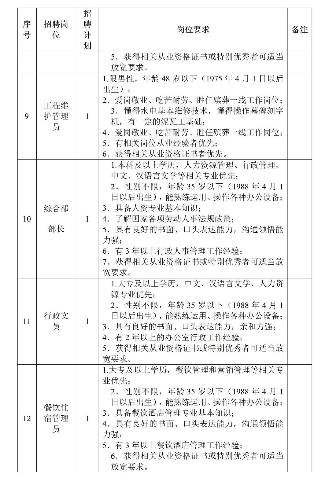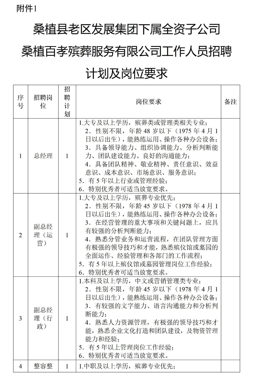 附件一:桑植縣老區(qū)發(fā)展集團(tuán)下屬全資子公司桑植百孝殯葬服務(wù)有限公司工作人員招聘計(jì)劃及崗位要求